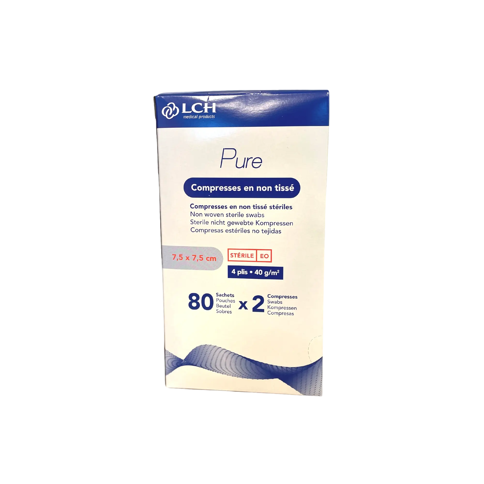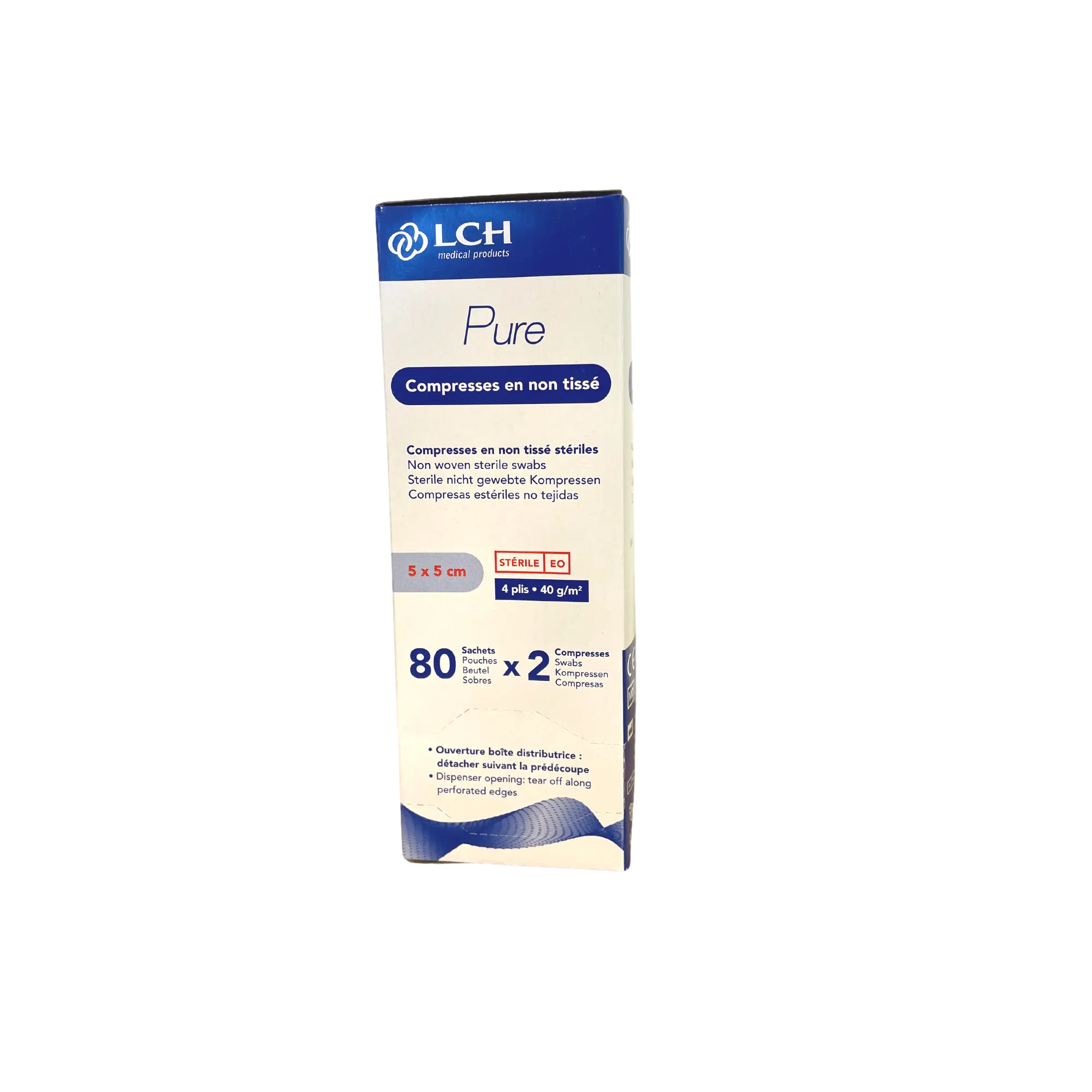 Verkoper:LCHCompresse non-tissée stérile - Pochette de 5 compresses - 40g/m2 - LCH