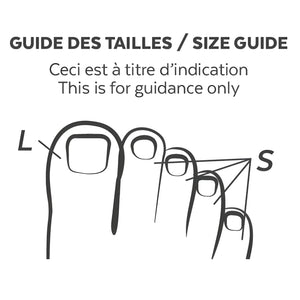 La PROTECTION CORS – ŒIL DE PERDRIX PODERM® s’adapte à tous types de chaussures et existe en 2 tailles (voir onglet « application »).